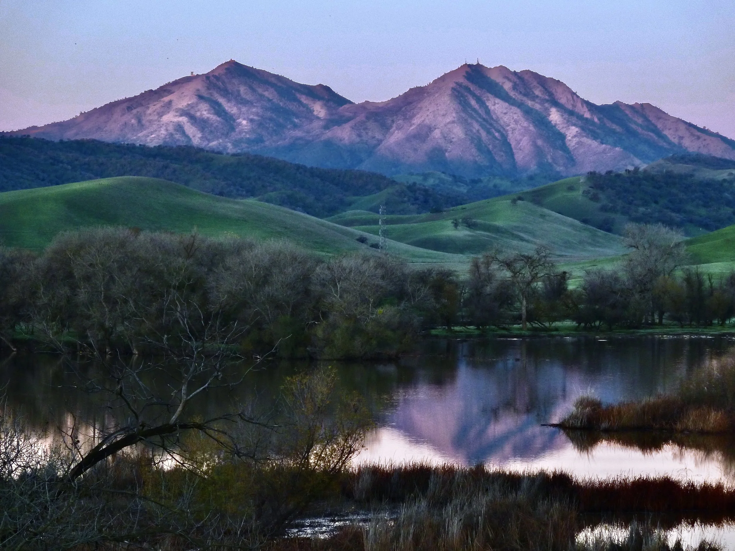 Diablo's twin peaks reflect the pastel tones of sunrise. Viewed from Highland Ridge, Morgan Territory.