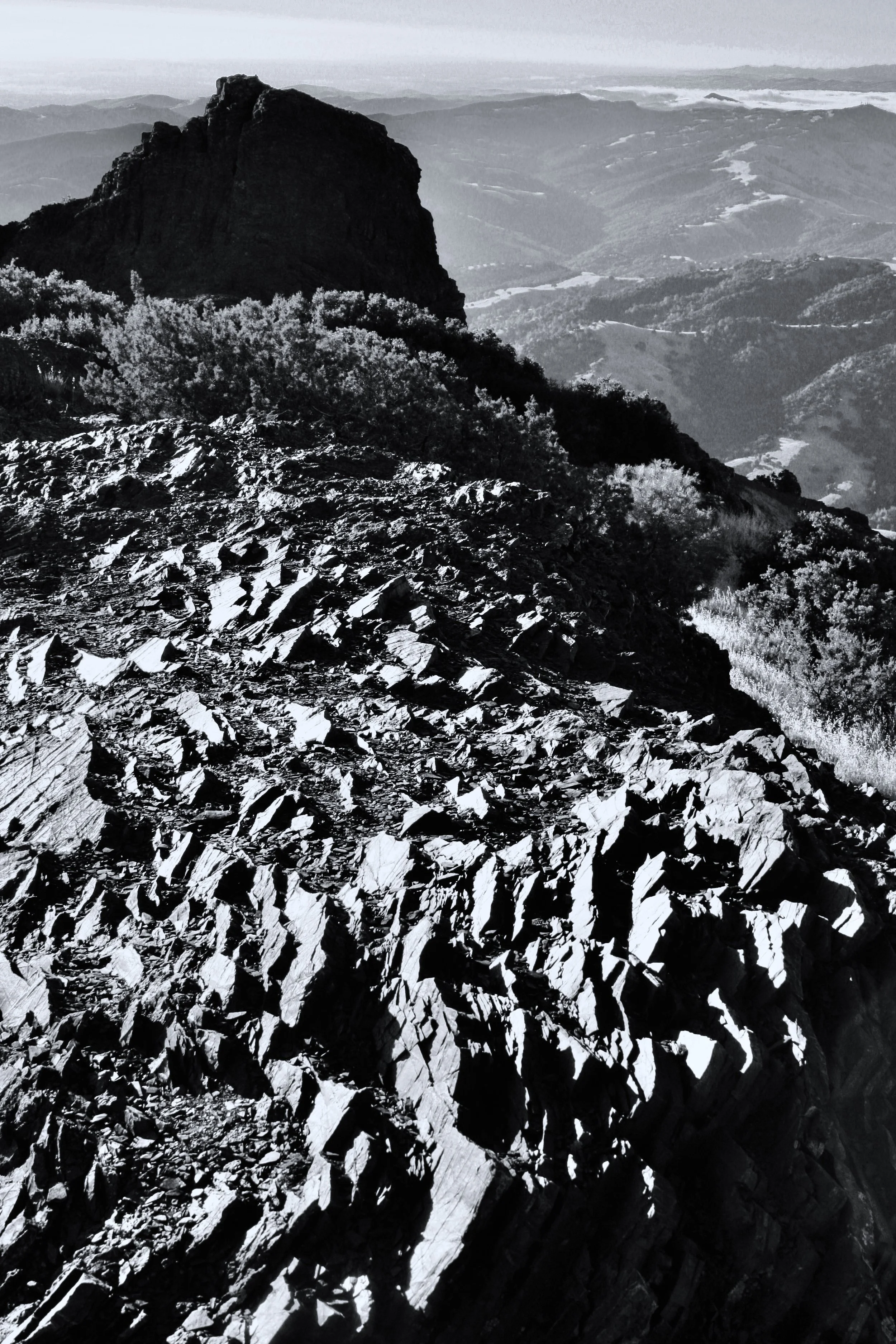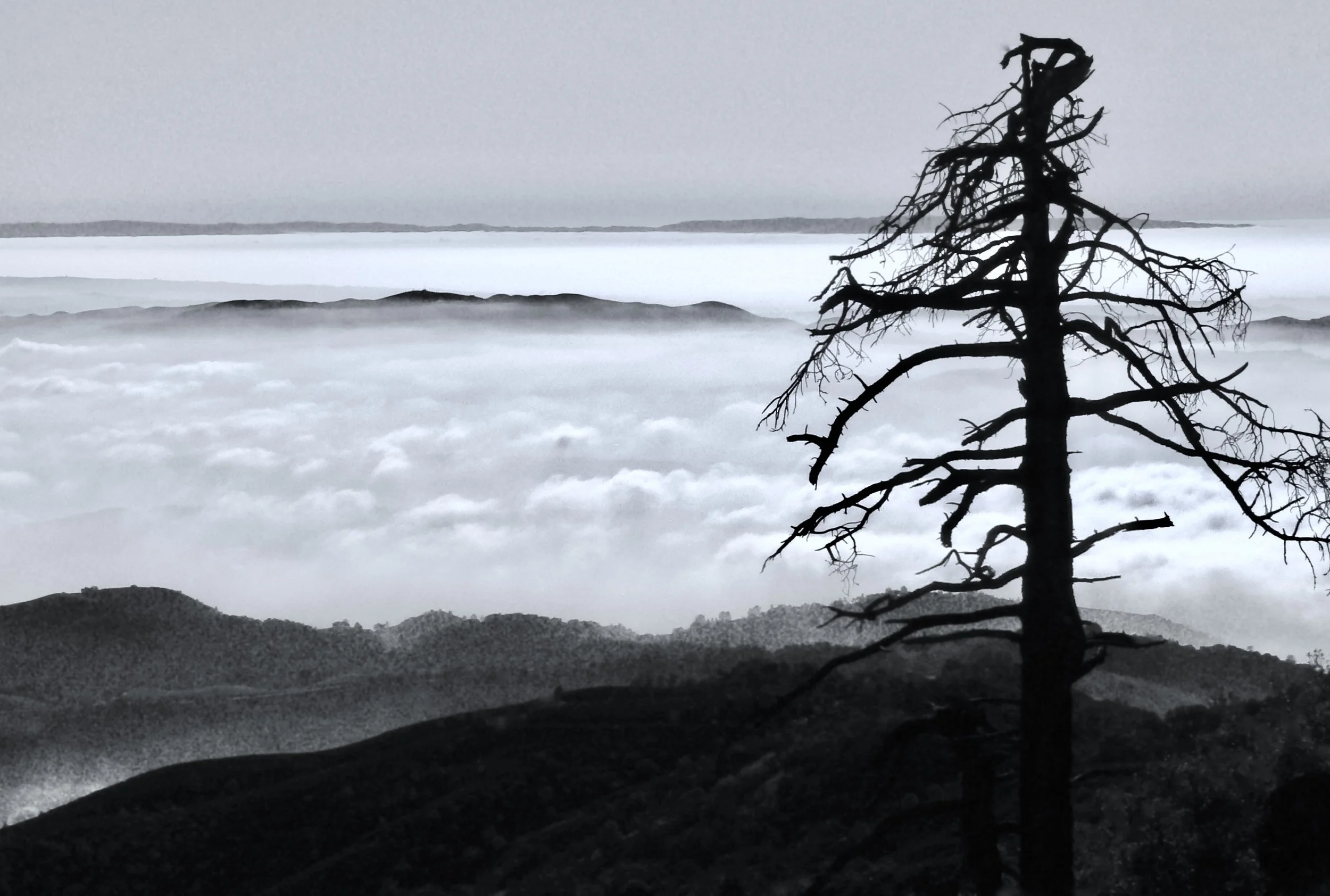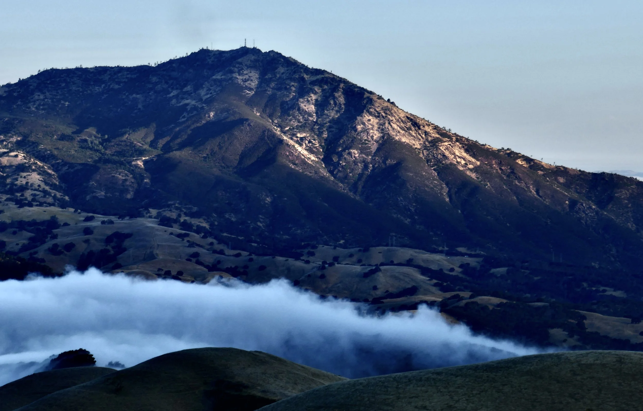 Viewed from Eagle Peak, Diablo's western foothills slither through the fog.
