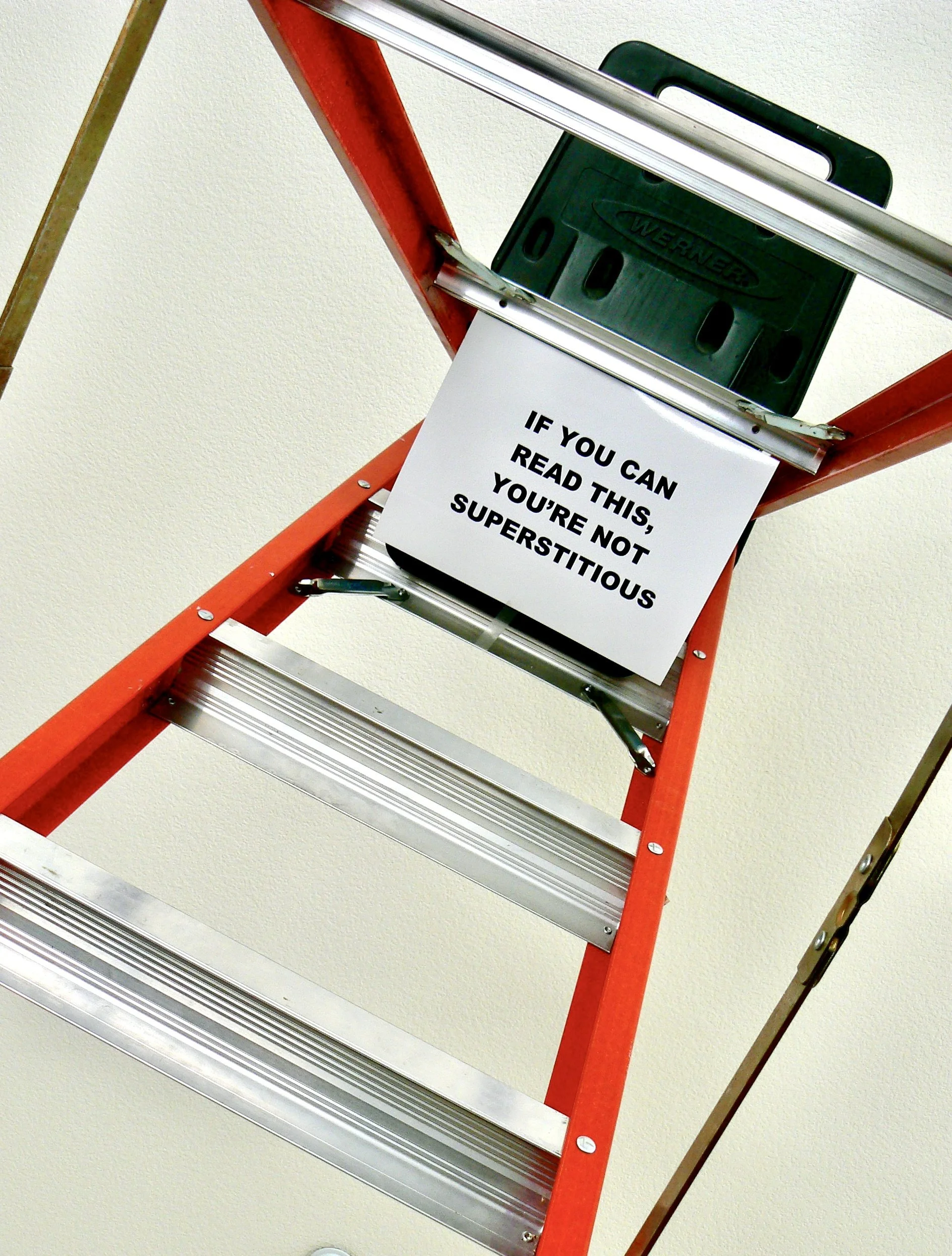 If I’m wrong about this, if our superstitions correspond to the way things work, if the number 13 is jinxed, we’re all in deep doo-doo. It means the cosmos is supervised by a malicious prankster, that the slightest slip-up can trigger tragic consequences, as when the groom who drops the wedding band at the ceremony dooms the marriage. Who knows what other innocent acts ignite icky outcomes? Calling AT&T Customer Service? That never went well for me.